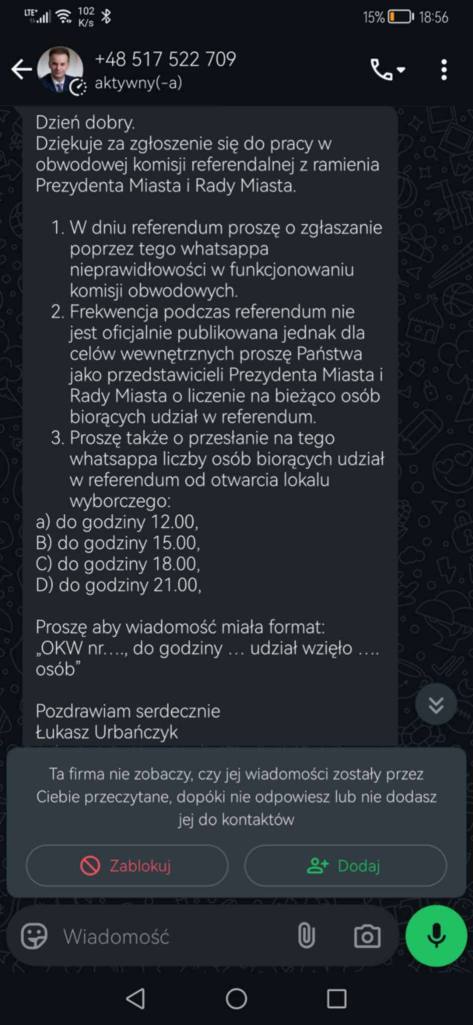Z naszych źródeł wynika, że już od początku tygodnia Sekretarz miał rozsyłać wiadomości oraz przekazywać ustne polecenia dotyczące monitorowania liczby osób uczestniczących w głosowaniu. Co istotne, takie działania nie znajdują oparcia w obowiązujących przepisach – monitoring frekwencji może być prowadzony jedynie w granicach określonych przez Państwową Komisję Wyborczą, a jakiekolwiek nieoficjalne próby wpływania na przebieg referendum mogą zostać uznane za naruszenie prawa.