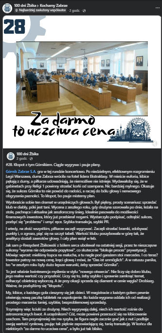 Symbolem tej medialno-politycznej wojny stał się temat Górnika Zabrze. W sieci powielane są hasła o „sprzedaży za darmo” i „blokowaniu inwestora”, jakby prywatyzacja klubu była transakcją jednodniową.
