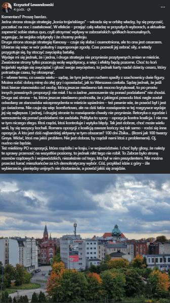 Dlatego decyzja Kamila Żbikowskiego o ostrożnym podejściu do tego tematu to nie słabość – to przejaw rozsądku. Ale rozsądek nie ma przebicia w świecie Facebooka, gdzie liczy się szybki mem i lajki od znajomych z byłego ratusza.